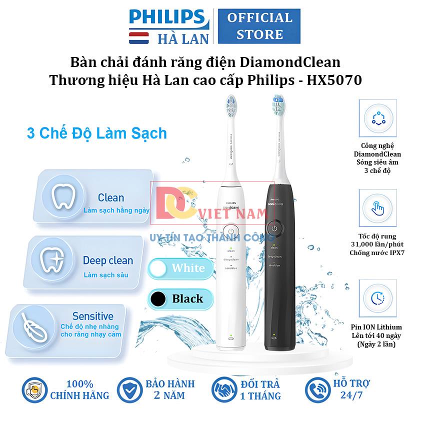 Bàn chải đánh răng điện Philips DiamondClean Series 1 HX5070 là sự lựa chọn lý tưởng cho những ai muốn nâng cao hiệu quả chăm sóc răng miệng với công nghệ tiên tiến và thiết kế tiện dụng
