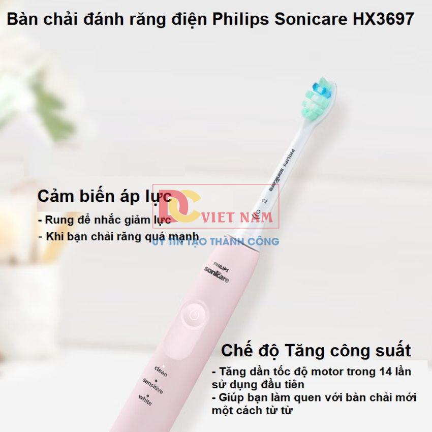 - Cảm biến áp lực tích hợp tự động phát hiện lực bạn tác động, cảnh báo và giảm độ rung để bảo vệ nướu. Bàn chải sẽ phát ra nhịp rung nhẹ để nhắc bạn giảm áp lực. 7/10 người dùng cho biết tính năng này giúp họ chải răng đúng cách hơn.