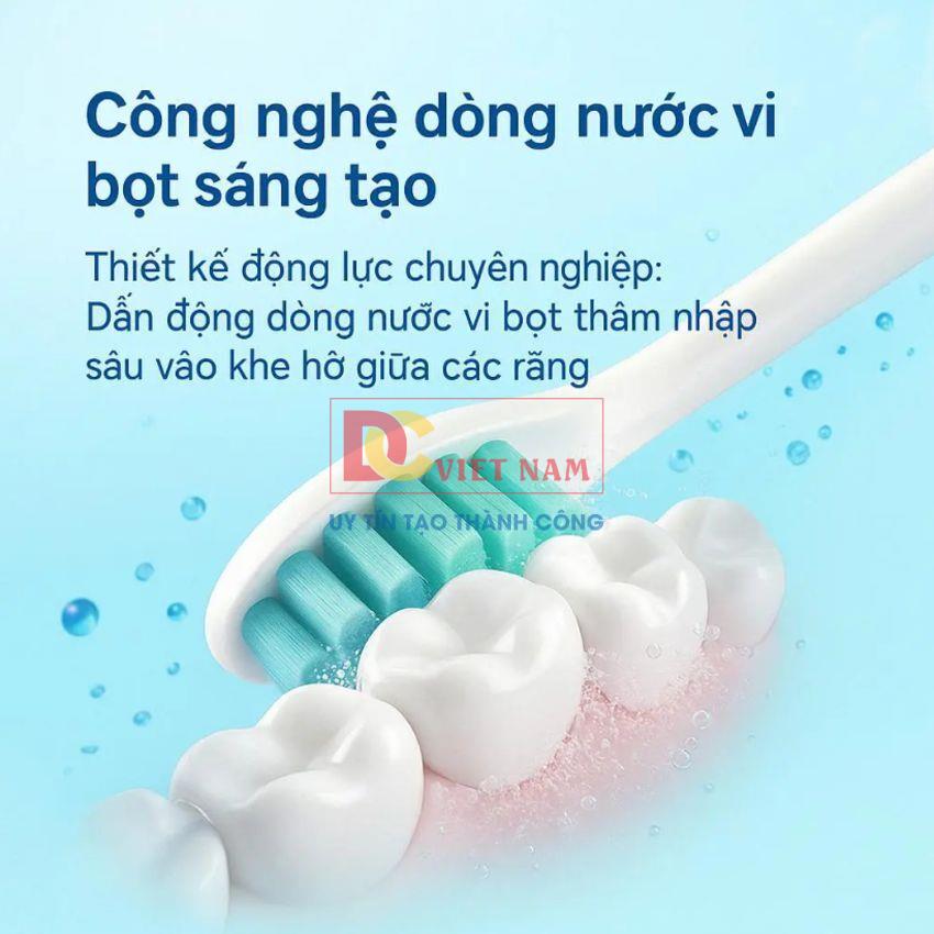 - Công nghệ Sonic: Sử dụng sóng âm với tốc độ rung cao, giúp tạo ra các bọt nước siêu nhỏ len lỏi vào kẽ răng, đường viền nướu để làm sạch sâu mảng bám và vụn thức ăn một cách nhẹ nhàng