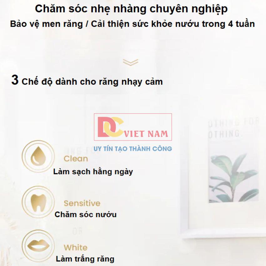 - 3 chế độ làm việc: Làm sạch hằng ngày, chăm sóc nướu và làm trắng răng