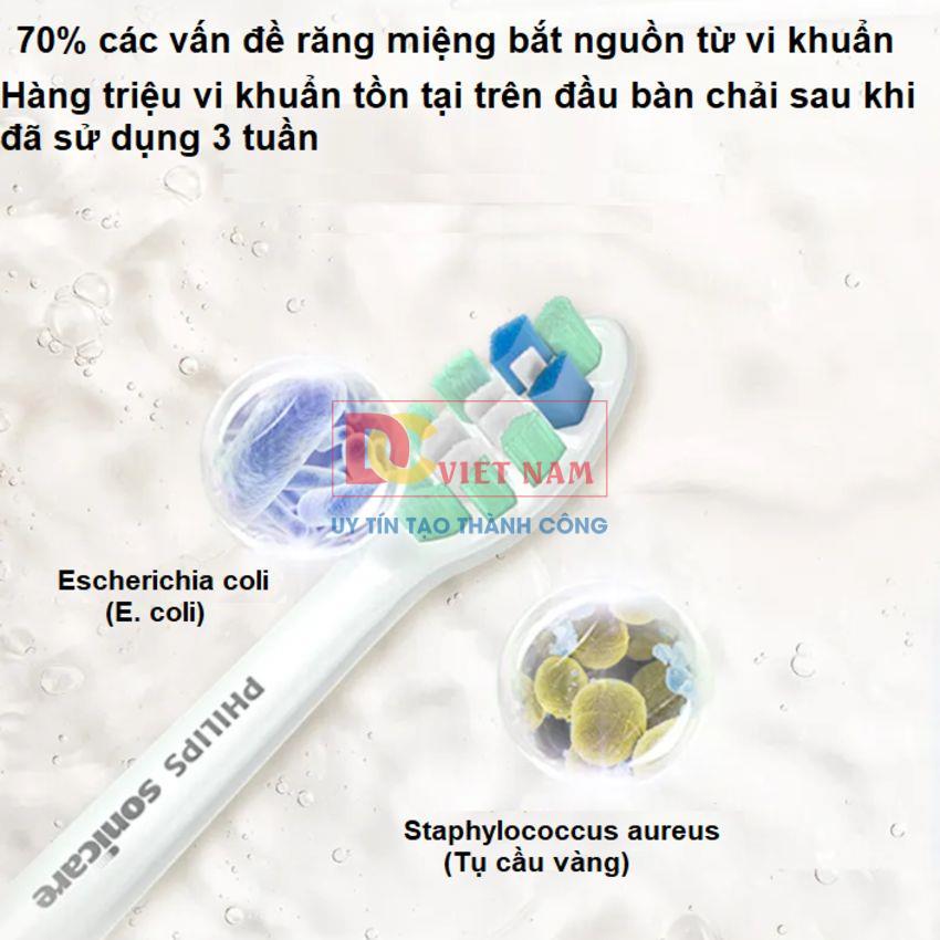 - Bàn chải điện Sonicare với công nghệ sóng âm tiên tiến được chứng minh lâm sàng giúp loại bỏ mảng bám gấp 7 lần so với bàn chải đánh răng thủ công. Nó loại bỏ mảng bám trên răng và dọc theo nướu, đồng thời bảo vệ nướu của bạn.