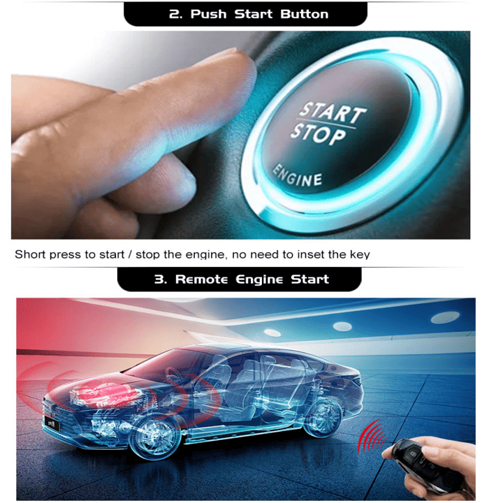 Bộ Chìa Khóa Thông Minh START-STOP Điều Khiển Từ Xa Ngày nay với sự tiến bộ vượt bậc của ứng dụng công nghệ. Việc thay thế chức năng ổ khóa cơ truyền thống thành ổ khóa điện với NÚT BẤM START/STOP sang trọng, kèm theo đó là nhiều tính năng thông minh khác. - Với hệ thống Smart Key, bạn không cần phải tra chìa vào ổ khóa rồi xoay như chìa khóa truyền thống, tất cả đã được thay thế bằng nút bấm Engine Start Stop. - Nút bấm Engine Start Stop thay thế ổ khóa cơ truyền thống, nên người dùng dễ dàng khởi động xe bằng thao tác bấm nút. Cơ chế hoạt động của nút bấm như sau: Khi người dùng không đạp phanh, bấm nút Startstop lần thứ nhất, hệ thống sẽ hiển thị chế độ “ACC“. Khi người dùng không đạp phanh, bấm nút Startstop lần thứ hai, hệ thống sẽ hiển thị chế đô “ON“. Ở bất kỳ chế độ nào, người dùng đạp phanh và ấn nút Startstop, hệ thống sẽ khởi động động cơ ở chế độ “Start Engine“.