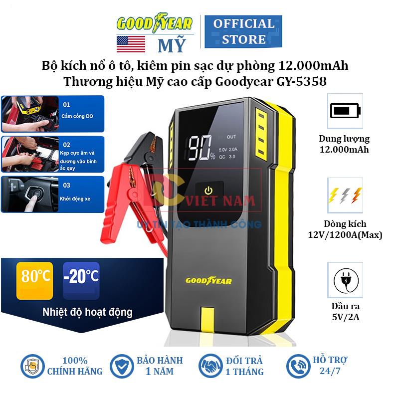 Goodyear là một trong những công ty sản xuất lốp xe lớn nhất thế giới. Không chỉ nổi tiếng trong lĩnh vực sản xuất các loại lốp xe mà còn liên tục phát triển nghiên cứu các dòng sản phẩm phụ kiện cao cấp trang bị cho ô tô. Giới thiệu kích nổ ô tô kiêm sạc dự phòng cao cấp Goodyear GY-5358