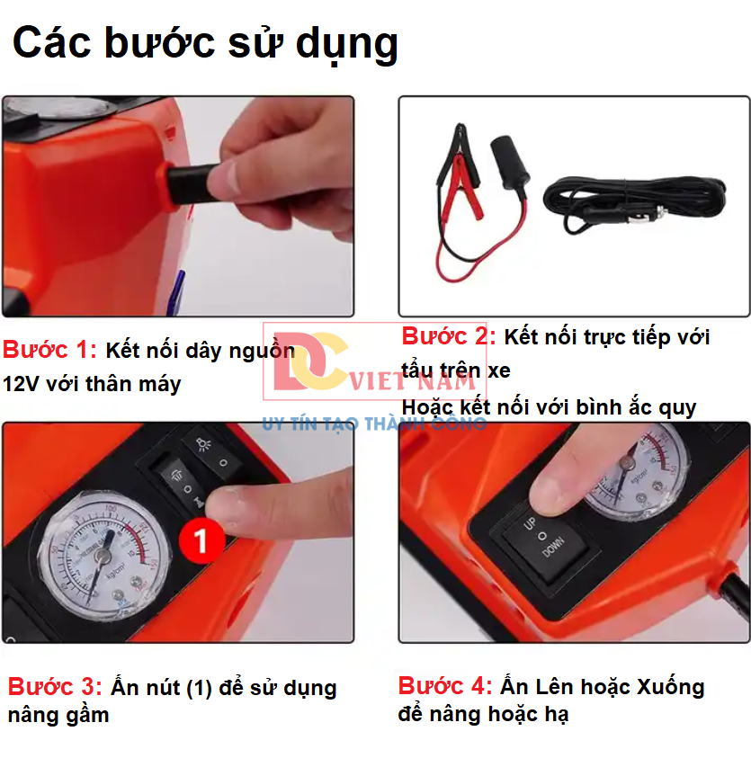 - Kích (con đội an toàn) với hành trình từ 15cm đến 45cm,thời gian nâng 2-3 phút,tải trọng tối đa 5000kg.