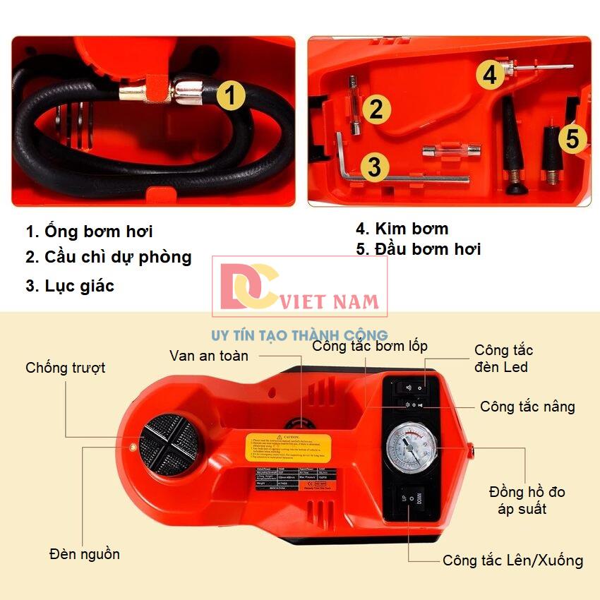 - Bơm hơi : Sức nén tối đa 150PSI, công suất 35L/phút