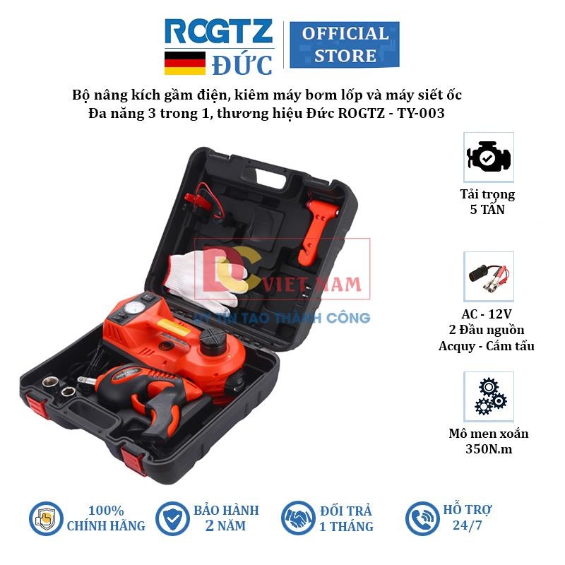 ROGTZ là Thương hiệu chuyên sản xuất nâng kích gầm ô tô nổi tiếng đến từ CHLB Đức, sản phẩm được thiết kế và phát triển dựa trên giá trị cốt lõi là cung cấp giá trị và chất lượng vượt trội cho người tiêu dùng. Giới thiệu bộ nâng kích gầm điện, kiêm máy bơm lốp và máy siết ốc ô tô đa năng 3 trong 1 ROGTZ TY-003, được nâng cấp một số tính năng mới như: Động cơ được nâng cấp giúp nâng và bơm khỏe hơn, máy siết ốc nhỏ gọn dễ thao tác...