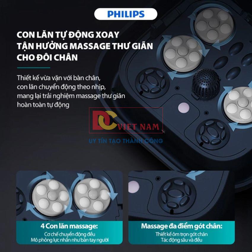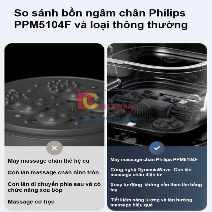 - Với mục tiêu cải thiện cuộc sống con người, Philips không ngừng nỗ lực và sáng tạo nhằm đưa công nghệ và kỹ thuật tối tân và tiết kiệm năng lượng vào những dòng sản phẩm đa dạng như: Máy massage chân, mặt, vai gáy, máy cạo râu, máy ép trái cây, máy hấp, máy pha cà phê, bình siêu tốc… Các sản phẩm của Philips đang được tiêu thụ rộng rãi tại Việt Nam, có mặt tại 90% các cửa hàng điện gia dụng và dễ dàng tìm thấy ở tất cả các siêu thị lớn trên cả nước. Qua nhiều năm đứng vững trên thị trường, đến nay, Philips hiện là lựa chọn yêu thích của người tiêu dùng Việt. Giới thiệu bồn ngâm kiêm máy massage chân tự động Philips PPM5104F là dòng nâng cấp từ mã PPM5103F
