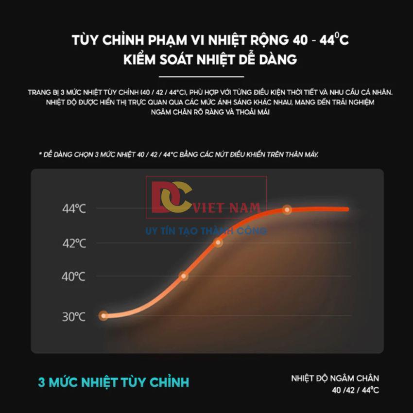 - Tự làm nóng nước điều chỉnh 3 mức nhiệt 40 độ, 42 độ và 44 độ C. Đáp ứng nhu cầu của các mùa khác nhau và nhiệt độ vừa phải (nhiệt độ mặc định màu xanh lá 40 độ, màu vàng 42 độ và màu đỏ 44 độ C).