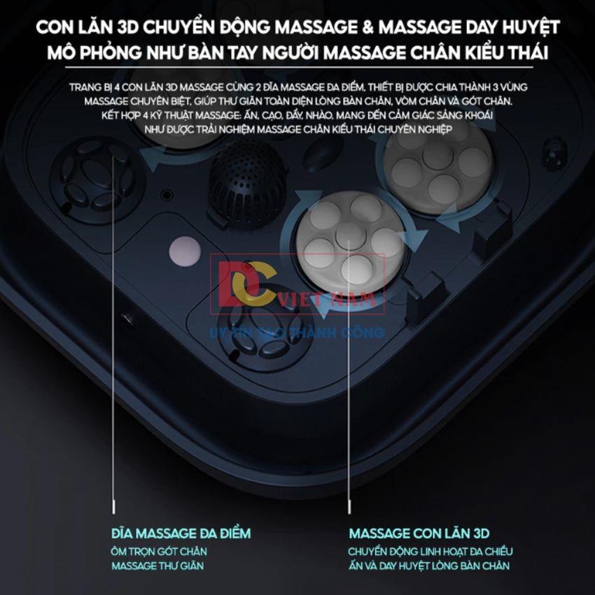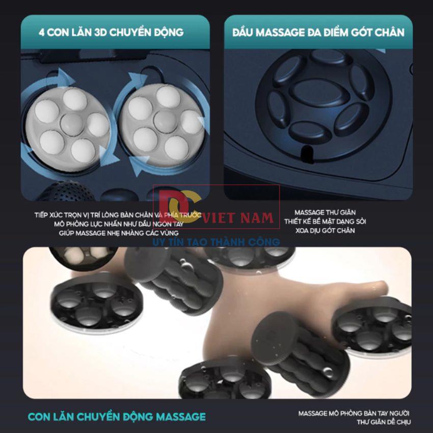 - Với 4 con lăn massage chân tự động kết hợp 2 đĩa massage đa điểm gót chân cho cảm giác như đôi chân được xoa bóp, bấm huyệt
