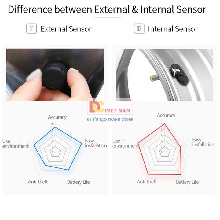 - Bộ cảm biến áp suất lắp ngoài; pin sử dụng được 2 năm; có thể tự thay mới.