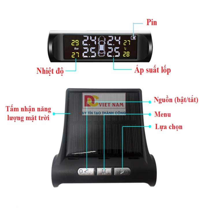 - Hiển thị 2 thông số đó là áp suất lốp và nhiệt độ lên màn hình LCD.