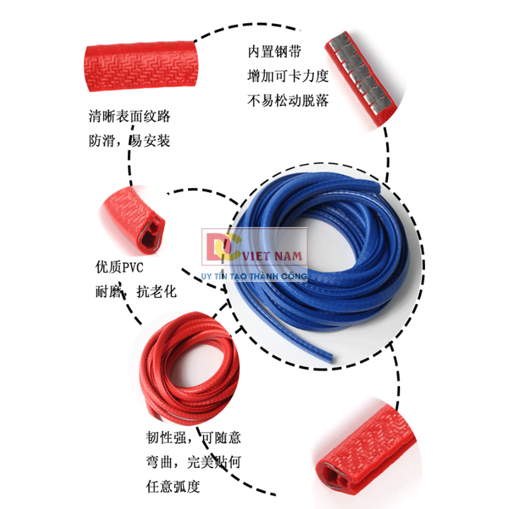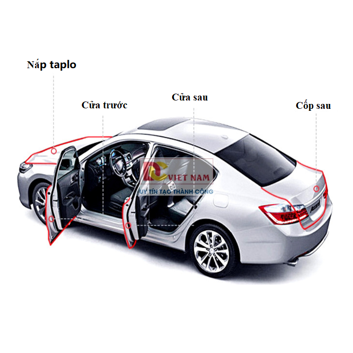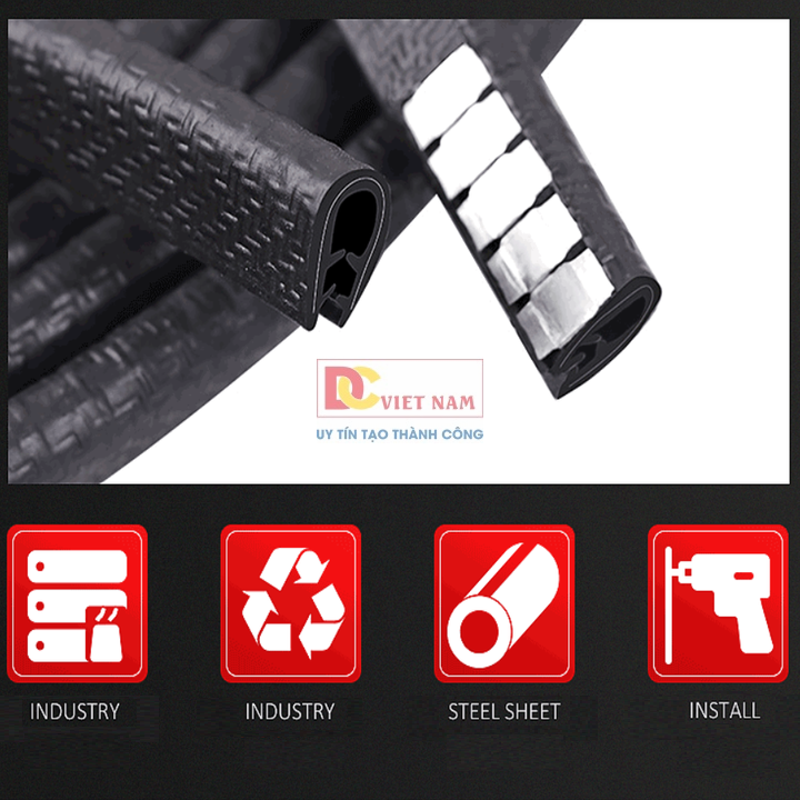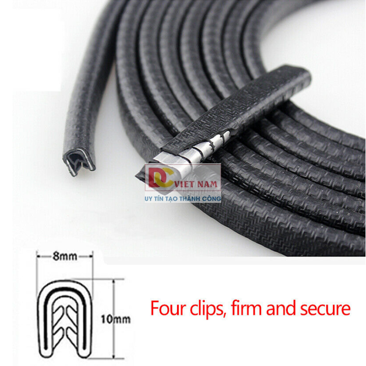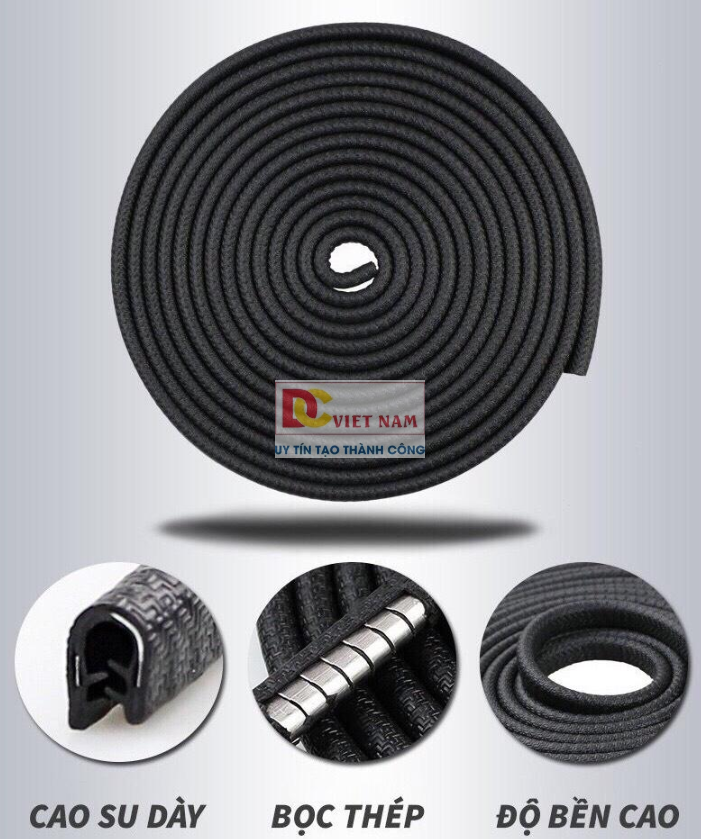 - Gioăng cao su chỉ viền chữ U có gờ kim loại bên trong đảm bảo bám dính chắc chắn trên viền mép cánh cửa xe.