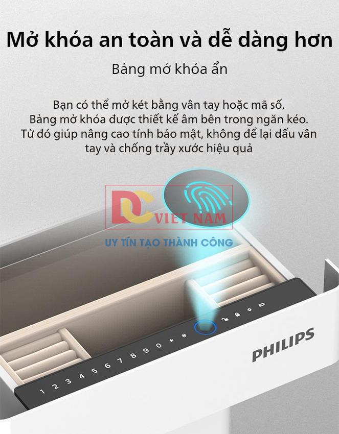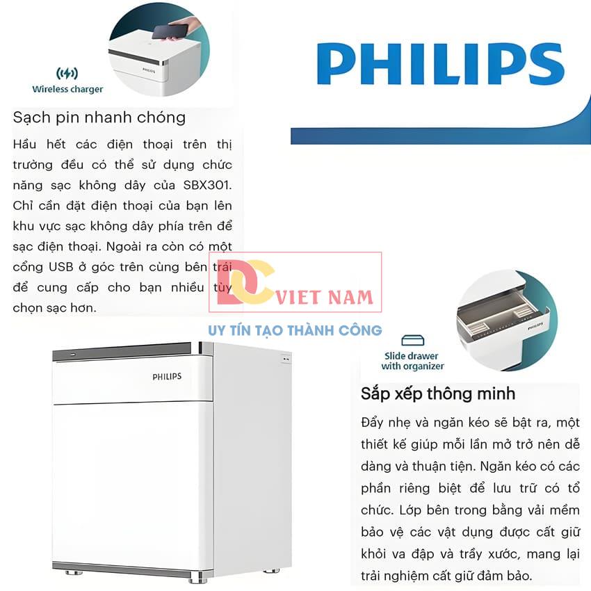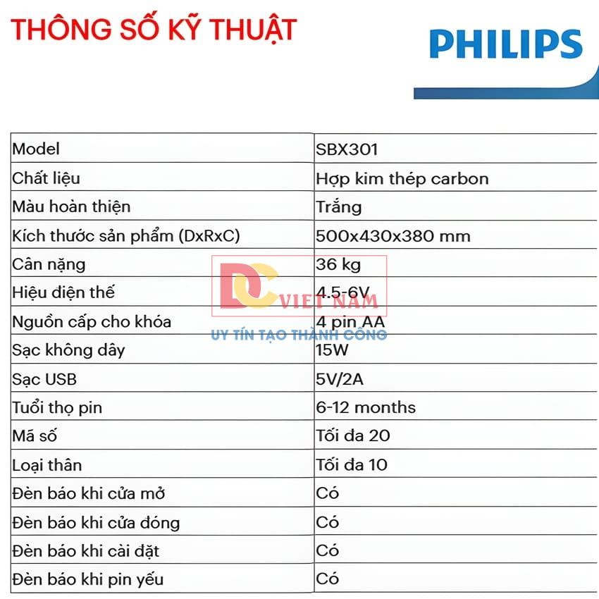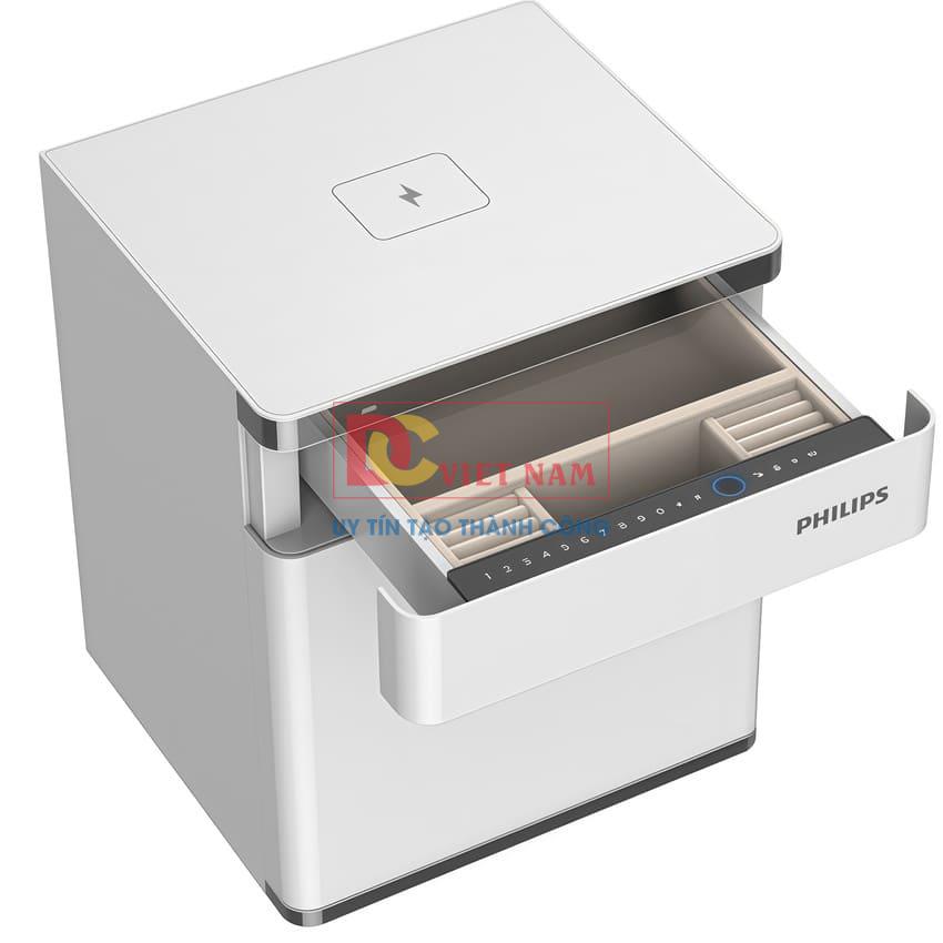 - Sạc không dây là đặc điểm đầu tiên cần nhắc đến của két sắt thông minh Philips SBX301-5PC