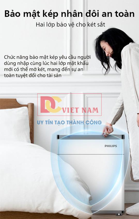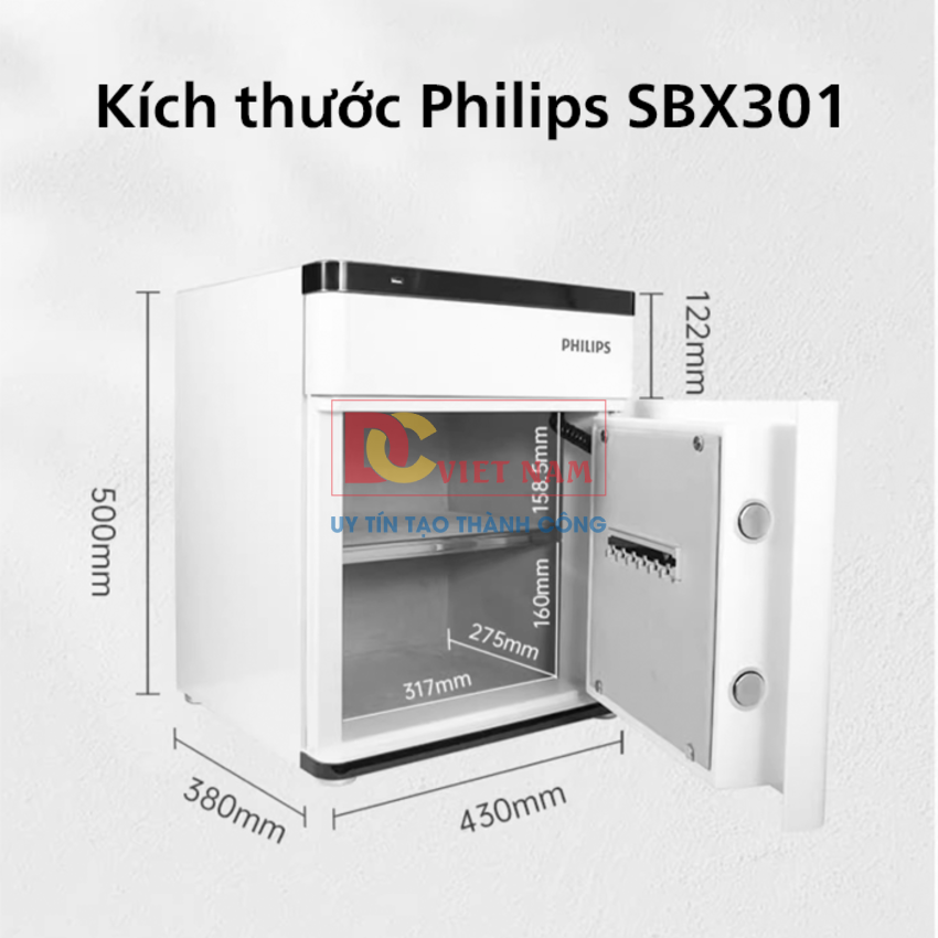 Két sắt thông minh Philips SBX301-5PC được thiết kế với hai ngăn khóa. Phù hợp với mục đích sử dụng linh hoạt cho người dùng. Ngăn bên trên được dùng với mục đích bảo quản và lưu trữ đồ trang sức giá trị. Ngăn két dưới đựng các tài sản giá trị khác. Nhằm nâng cao mức độ bảo mật thông qua phương thức mở két bằng vân tay và mã số. Được phủ bề mặt 3 lớp: hợp kim carbon bóng, hợp kim nhôm cao cấp và tấm kính cường lực.