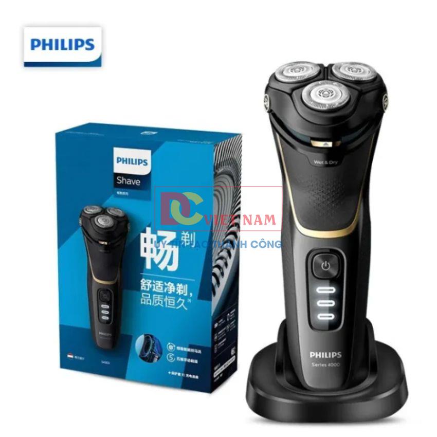 - Với mục tiêu cải thiện cuộc sống con người, Philips không ngừng nỗ lực và sáng tạo nhằm đưa công nghệ và kỹ thuật tối tân và tiết kiệm năng lượng vào những dòng sản phẩm đa dạng như: bàn ủi, máy cạo râu, máy ép trái cây, máy hấp, máy pha cà phê, bình siêu tốc… Các sản phẩm của Philips đang được tiêu thụ rộng rãi tại Việt Nam, có mặt tại 90% các cửa hàng điện gia dụng và dễ dàng tìm thấy ở tất cả các siêu thị lớn trên cả nước. Qua nhiều năm đứng vững trên thị trường, đến nay, Philips hiện là lựa chọn yêu thích của người tiêu dùng Việt. Máy cạo râu Philips S4303, Series 4000 có thể cạo râu khô và ướt một cách nhẹ nhàng chỉ với vài thao tác đơn giản.