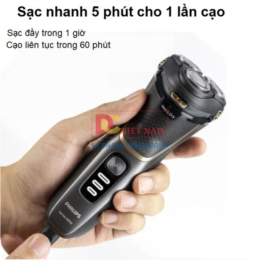 - Sạc nhanh 5 phút cung cấp đủ năng lượng cho 1 lần cạo râu: Đang vội? Cắm máy cạo râu của bạn trong 5 phút và có đủ điện cho 1 lần cạo râu hoàn toàn.