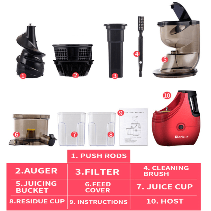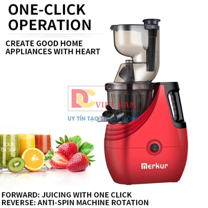 Máy ép chậm Merkur là lựa chọn tối ưu để có được những ly nước ép thơm ngon, bổ dưỡng mỗi ngày. Máy ép chậm này sử dụng ống ép cỡ XXL giúp bạn không cần phải cắt nhỏ trái cây và rau củ trước khi ép. Rửa sạch máy dễ dàng trong vòng 90 giây.