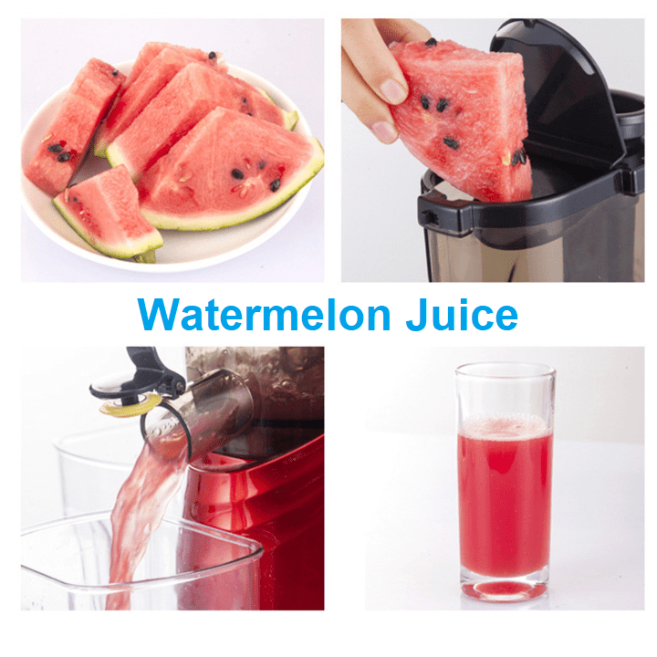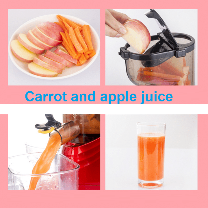 - Các thử nghiệm cho thấy lượng nước ép từ máy ép trái cây tốc độ thấp nhiều hơn 1,5 lần so với máy ép trái cây thông thường. Máy có thể ép được các loại rau, củ, quả như cà rốt, các loại rau, cỏ lúa mì…(Lưu ý khi ép các loại rau nhiều chất sơ, cần thái nhỏ sắt miếng 0,5 cm trước khi cho vào máy)