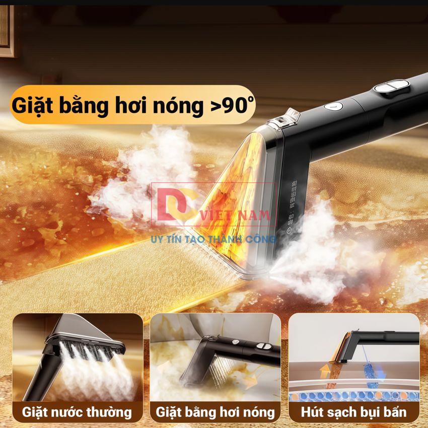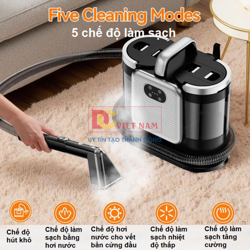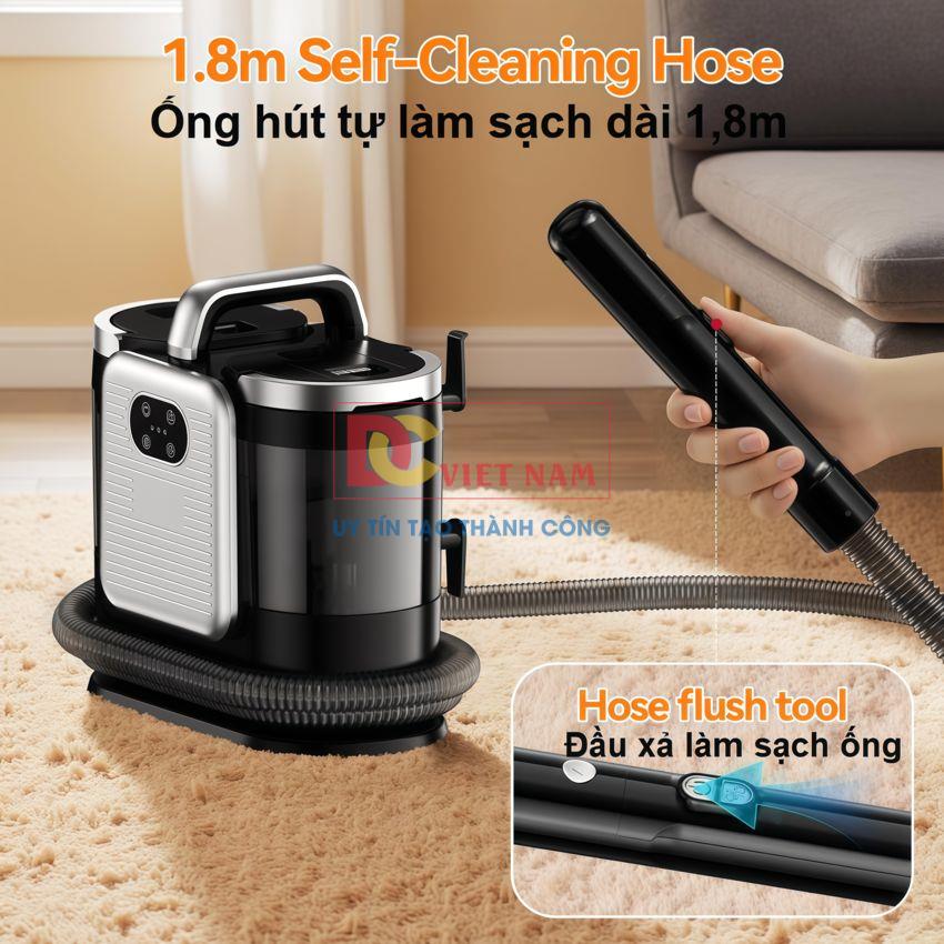 - Công nghệ làm sạch thông minh: Xịt nước, Chải, Phun Sâu, Hút giúp làm sạch sâu các bề mặt như cửa kính, rèm cửa, ghế sofa, ga giường nệm, thảm, gấu bông, đồ da, nội thất ô tô với mức tiếp cận sâu tới 6cm.