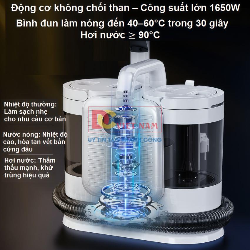 ‒ Động Cơ Công Suất Cực Cao 1650W: Giúp làm sạch hiệu quả hơn, đánh bay vết bẩn cứng đầu