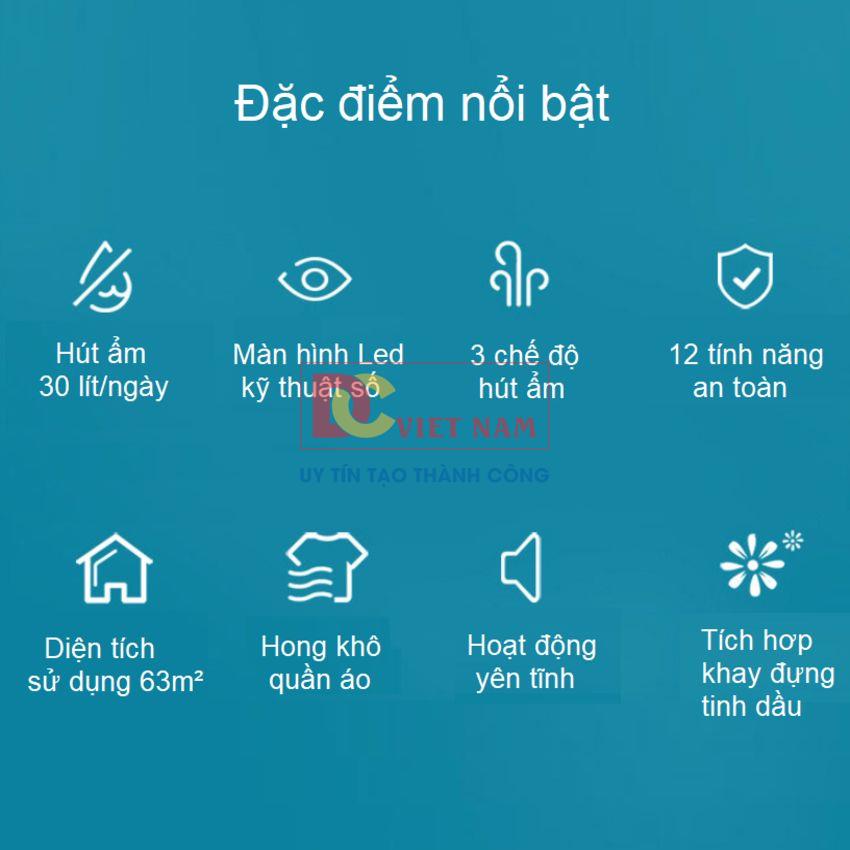 - Hút ẩm thông minh, hút ẩm nhanh, tự động đạt được độ ẩm được cài đặt sẵn.