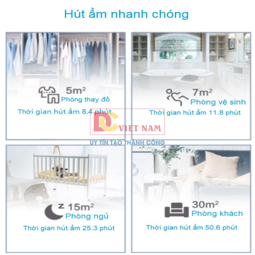 - Hút ấm nhanh chóng và liên tục giúp cho nhà bạn luôn khô ráo, thoáng mát. Chế độ sấy khô mạnh mẽ, ngăn chặn sự tăng trưởng của vi khuẩn và nấm mốc.