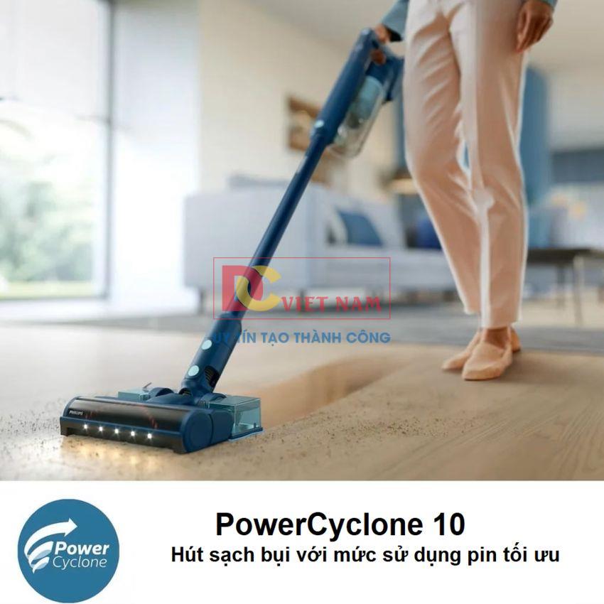 - Kết hợp lực hút mạnh mẽ và mức tiêu thụ điện thấp. Công nghệ PowerBlade thế hệ 10 tạo ra luồng khí tối đa 840 lít/phút, giúp hút sạch bụi bẩn hiệu quả hơn. Thiết kế tối ưu giúp thời gian hoạt động dài hơn và hiệu suất làm sạch mạnh mẽ hơn.