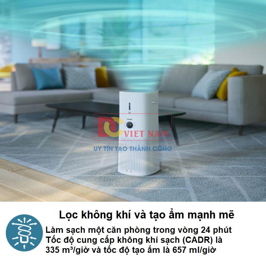 - Máy phân phối luồng không khí sạch mạnh mẽ đến mọi góc trong phòng với CADR (Tốc độ cấp khí sạch) 505 m³/h, giúp làm sạch hiệu quả các phòng lớn tới 54m².