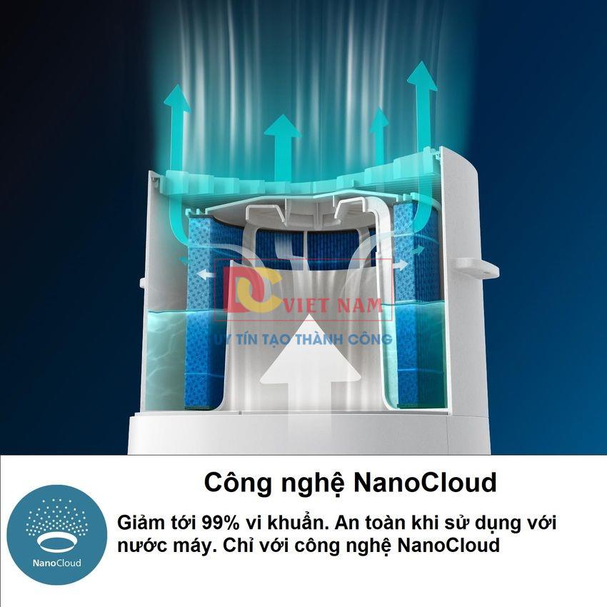 - Công nghệ NanoCloud giảm 99% vi khuẩn so với máy tạo ẩm siêu âm.