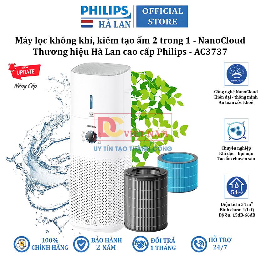 Philips AC3737/00 là một máy lọc không khí và tạo ẩm 2 trong 1, có công suất lọc mạnh mẽ cho phòng rộng tới 54m². Sản phẩm có khả năng loại bỏ bụi mịn PM2.5, các chất gây ô nhiễm và bổ sung độ ẩm, phù hợp với những ai muốn cải thiện chất lượng không khí trong nhà, đặc biệt là gia đình có trẻ nhỏ hoặc người nhạy cảm