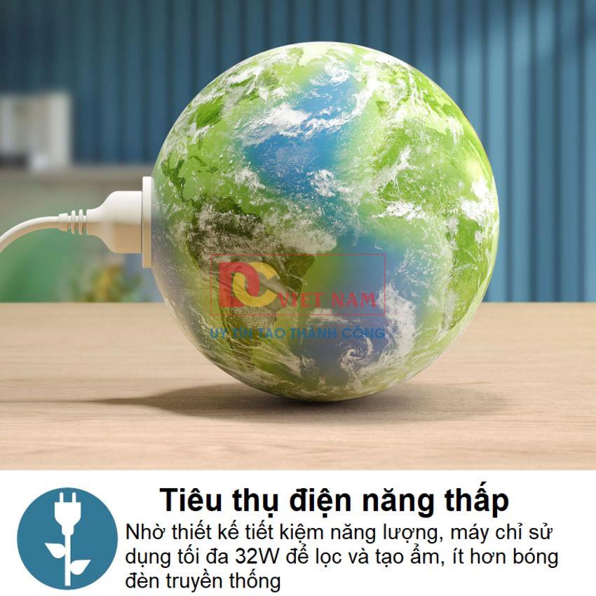 - Tận hưởng không khí trong lành hơn đồng thời tiết kiệm điện. Ở công suất tối đa, máy lọc không khí chỉ sử dụng 32W, ít năng lượng hơn so với bóng đèn thông thường.