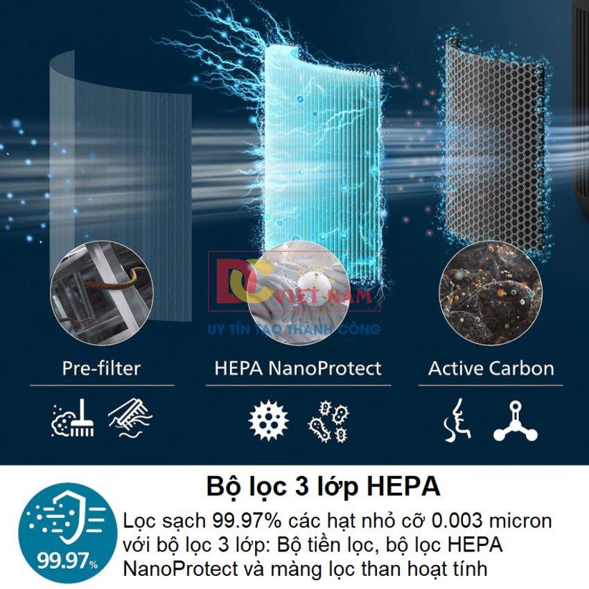 Lọc HEPA 3 lớp giữ lại 99,97% các hạt nhỏ nhất