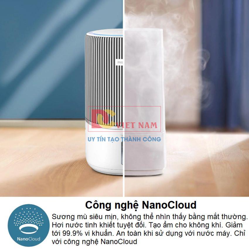 - Công nghệ NanoCloud tạo ra hơi nước sạch hơn. Công nghệ tạo sương siêu mịn, vô hình với mắt thường và cực kỳ khó bám dính đối với vi khuẩn hoặc cặn bẩn. Làm ẩm không khí với lượng vi khuẩn thải ra ít hơn tới 99,9% so với máy tạo ẩm sóng siêu âm thông thường, an toàn khi sử dụng với nước máy.
