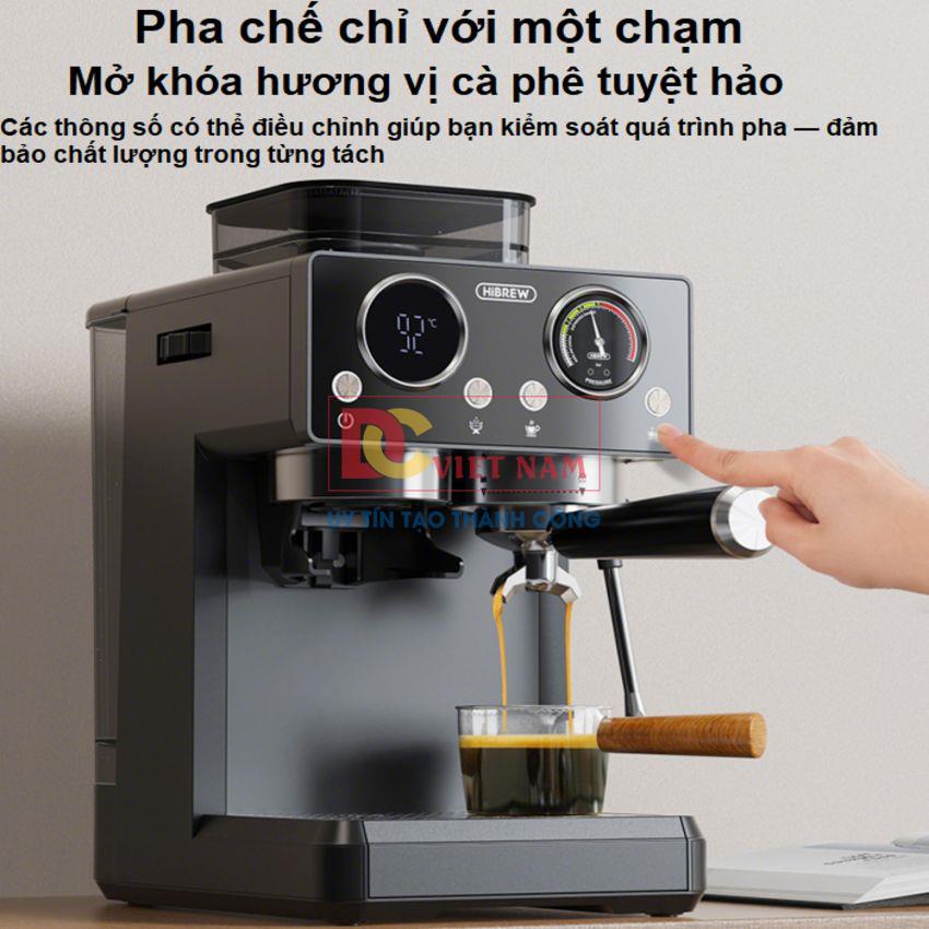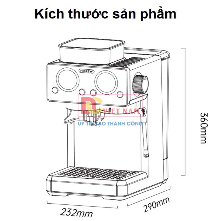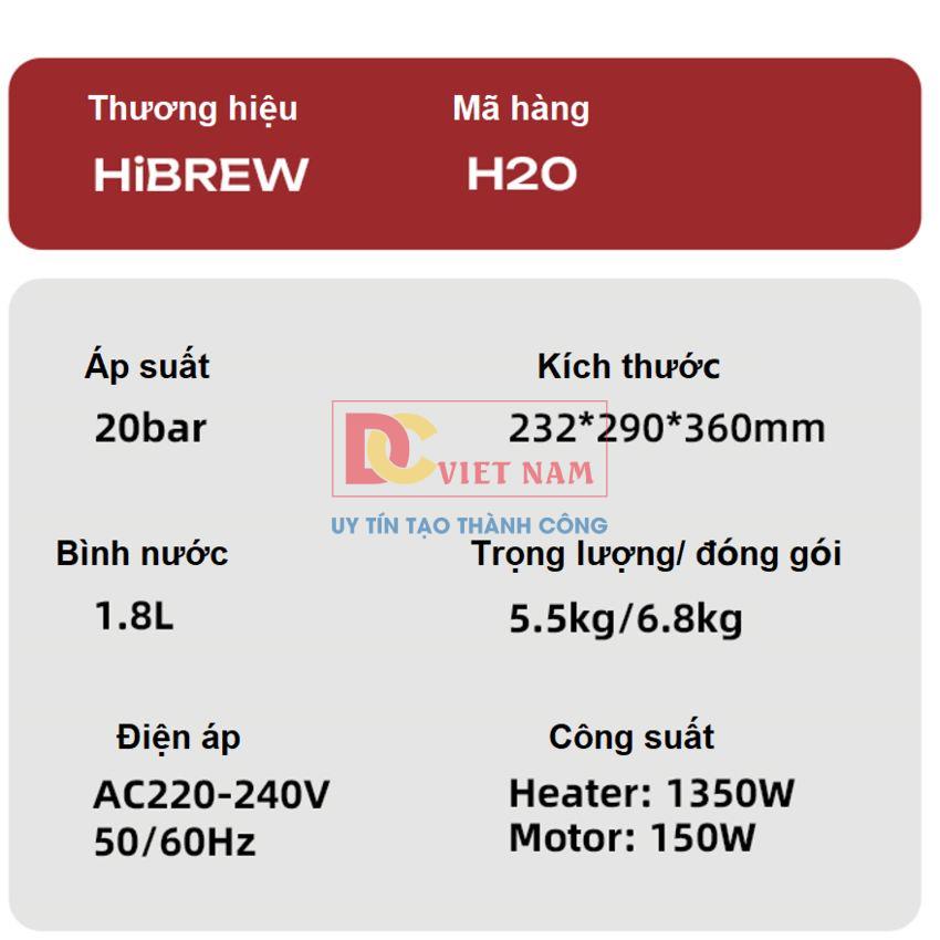 - Máy pha cà phê Espresso 3 trong 1 HiBREW H20 có công suất hoạt động là 1500W, áp suất 20 bar cho phép pha tối đa 30-35 ly/ngày. Nhờ đó đáp ứng được nhu cầu sử dụng tại các văn phòng, gia đình...
