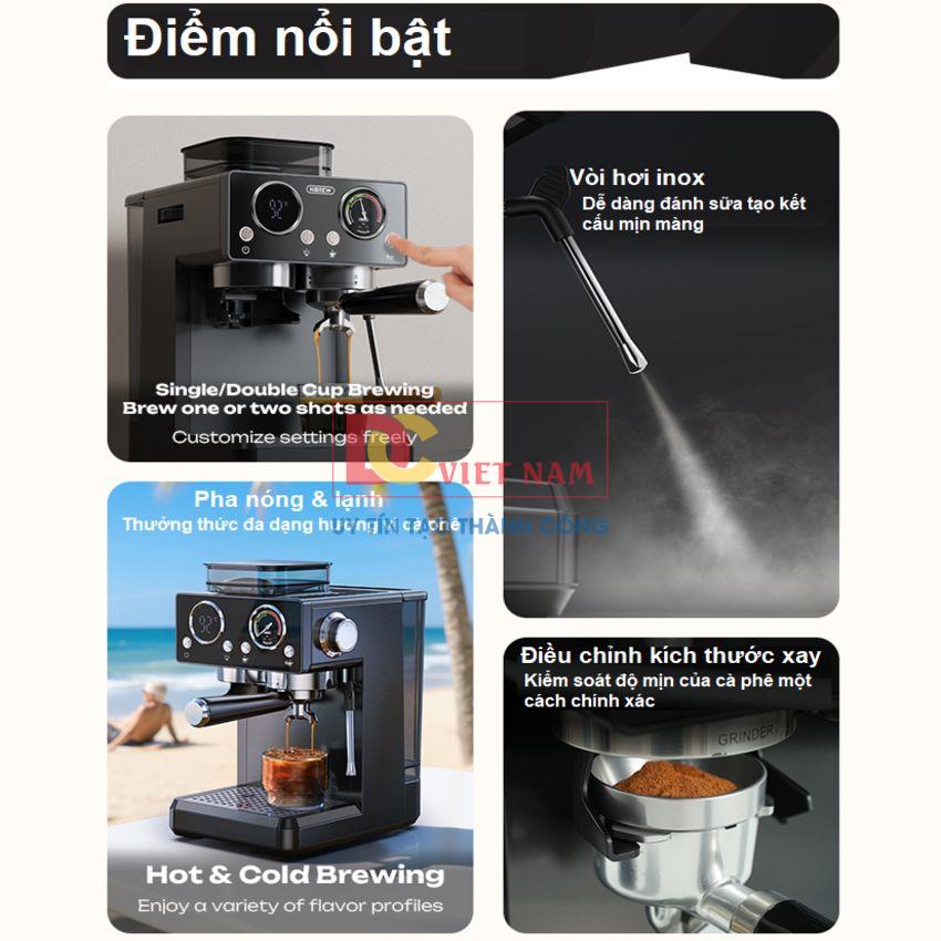 - Chức năng pha cà phê: Cappuccino, Espresso, Latte