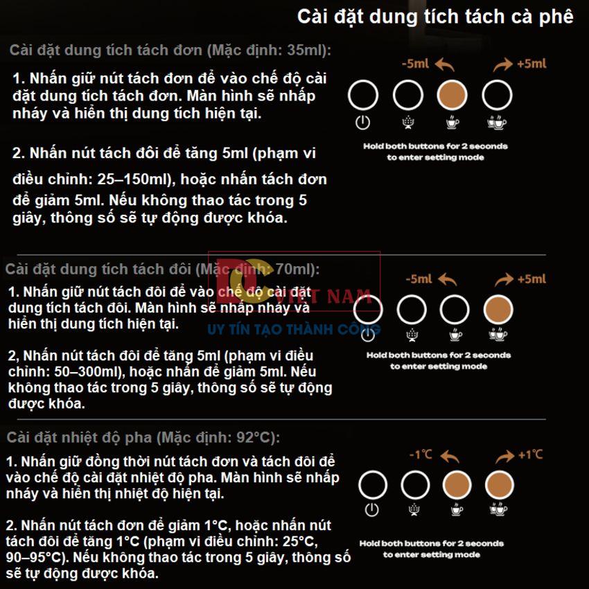 - Điều chính nhiệt độ chiết xuất: 25ºC; 90ºC-95ºC