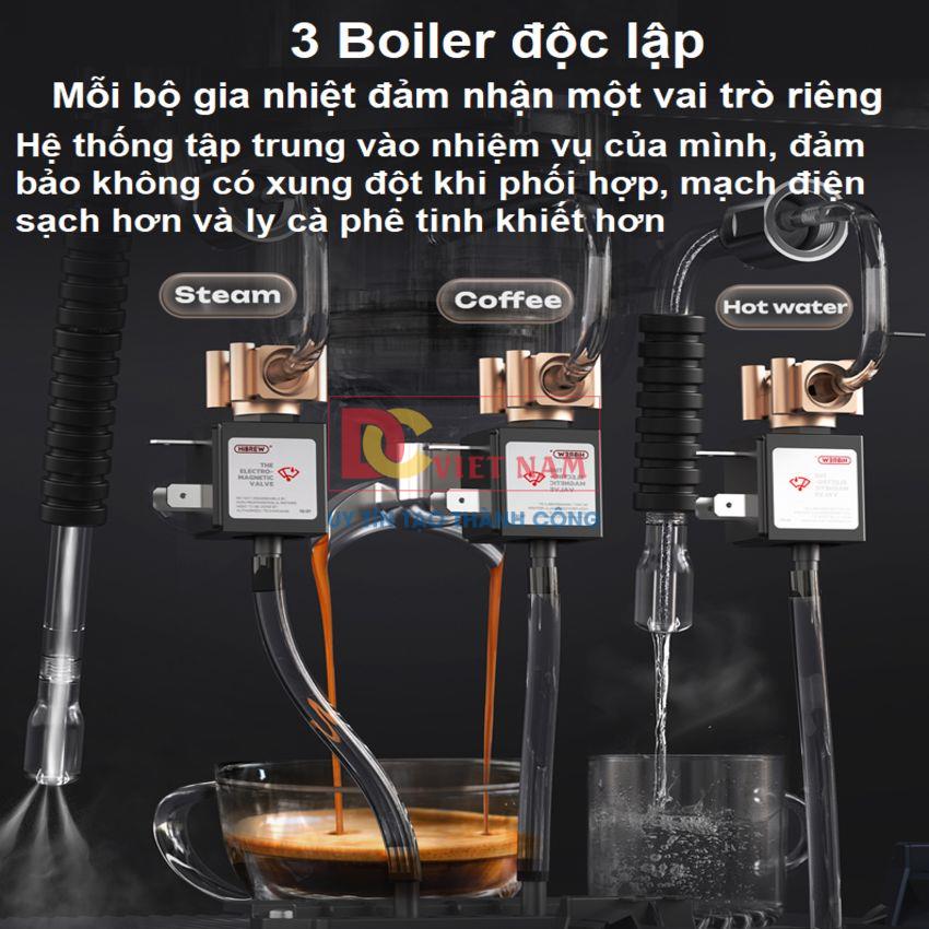- 3 Boiler nồi hơi độc lập tiên tiến cho phép thực hiện đồng thời 2 quá trình: Chiết xuất và đánh sữa