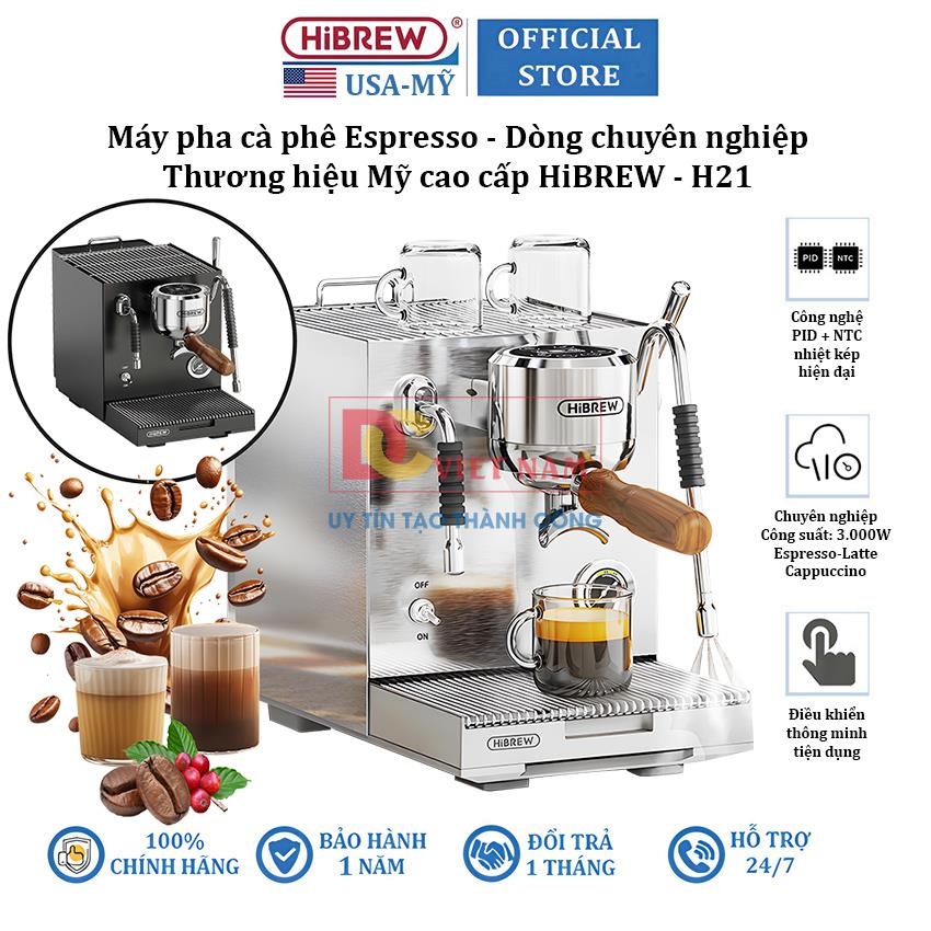 Máy pha cà phê Espresso chuyên nghiệp HiBREW H21 là máy pha cà phê chuyên nghiệp cao cấp, dành cho các quán cà phê, nhà hàng đến các xe bán cà phê lưu động ngoài đường phố đòi hỏi hiệu suất cao. HiBREW H21 thiết kế hiện đại, nhỏ gọn nhưng vẫn hoạt động mạnh mẽ là sản phẩm thay đổi cuộc chơi trong thế giới giải pháp cà phê. Được thiết kế dành riêng cho người sành và am hiểu về cà phê, chiếc máy này mang đến sự tiện lợi, hiệu quả và khả năng pha cà phê espresso chất lượng cao để giúp bạn luôn tràn đầy năng lượng và làm việc hiệu quả suốt cả ngày.