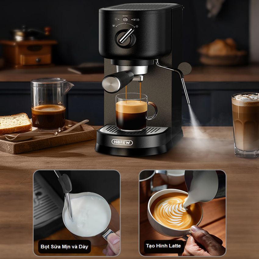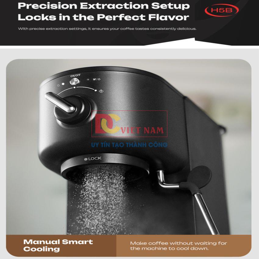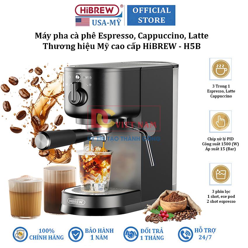 - Máy pha cà phê Espresso chuyên nghiệp HiBREW H5B có công suất hoạt động là 1500W, áp suất 15 bar. Đáp ứng được nhu cầu sử dụng tại các văn phòng, gia đình...