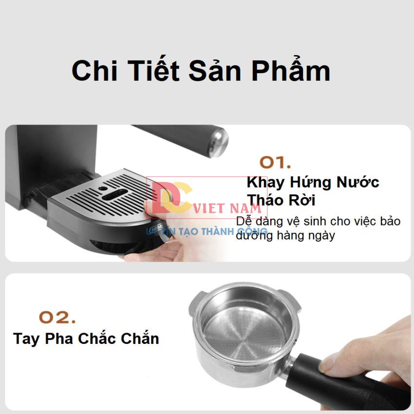 * Bộ phụ kiện bao gồm: 1 thân máy, 3 phin lọc inox, 1 tay cầm tiêu chuẩn 51mm, 1 thìa múc kiêm nén, 1 ống mồi nước, 1 sách HDSD