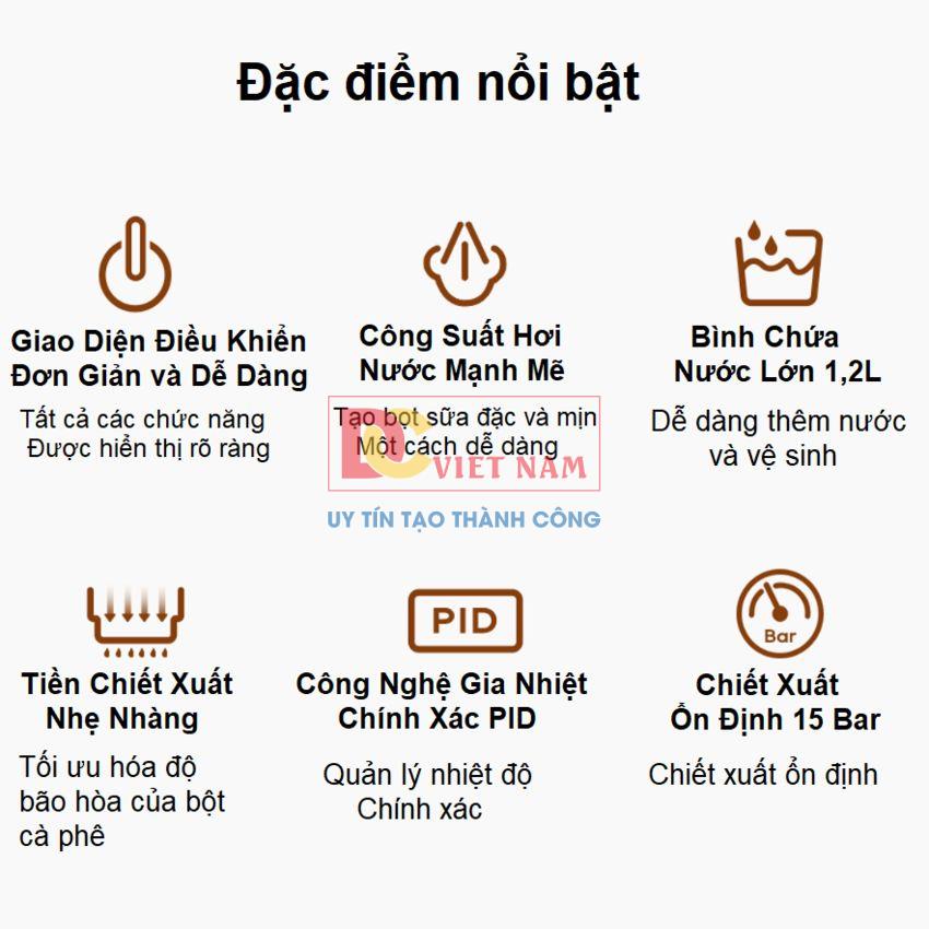 - Chức năng pha cà phê: Cappuccino, Espresso, Latte