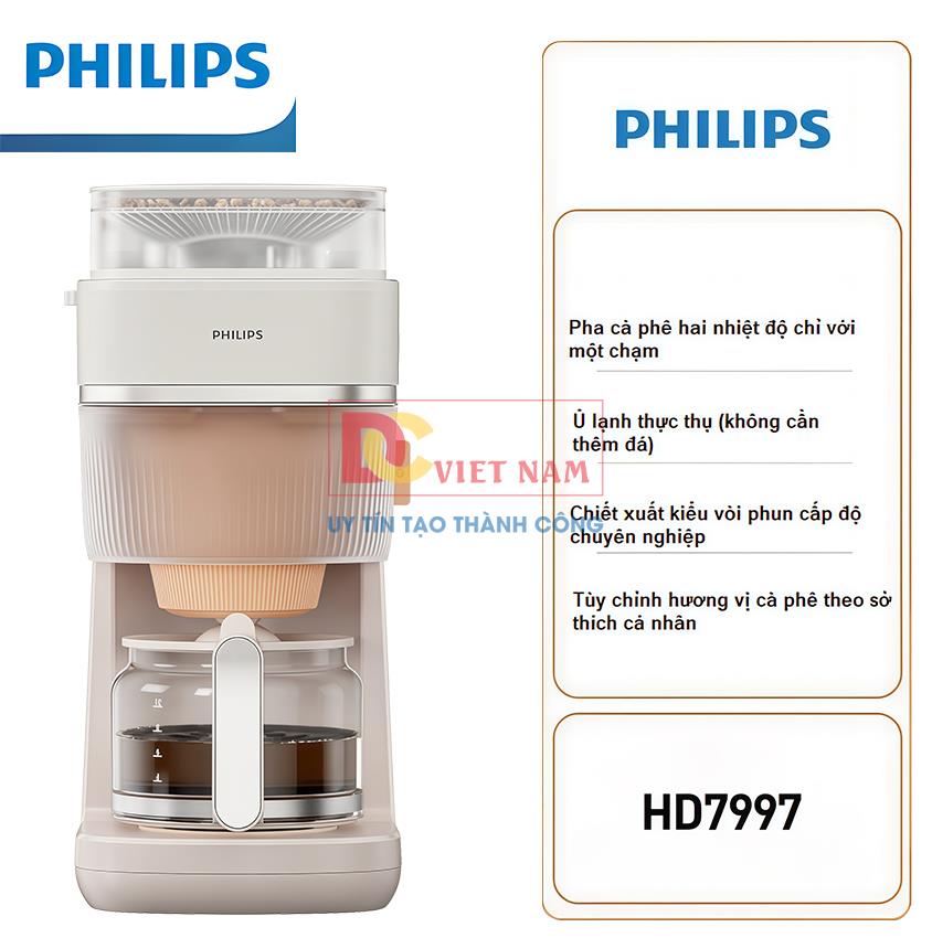 - Là một tín đồ cà phê, bạn sẽ yêu thích sự tươi ngon của hạt cà phê trong mỗi tách. Philips HD7997 cho phép bạn thư giãn khi pha, thưởng thức một cách ngon miệng khi nhâm nhi tách cà phê yêu thích.