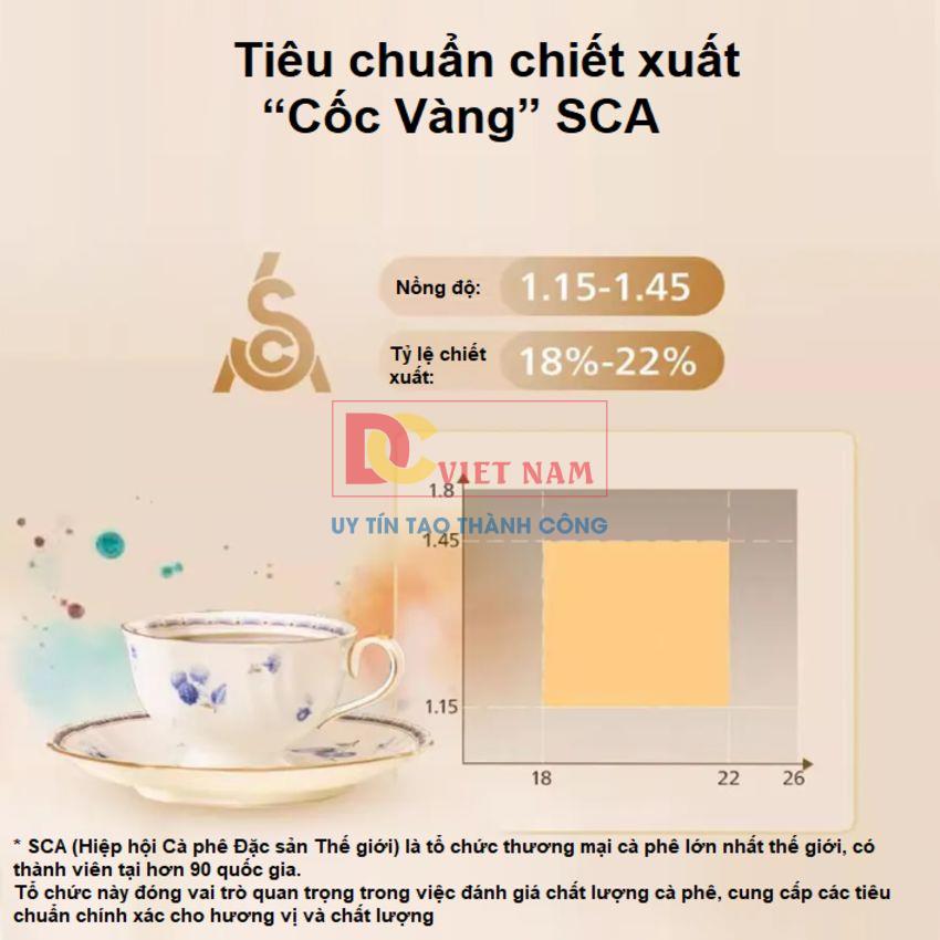 - Tiêu chuẩn chiết xuất: Cốc vàng SCA