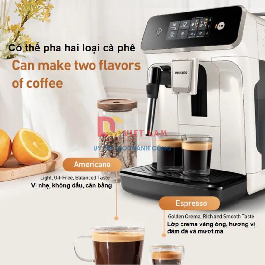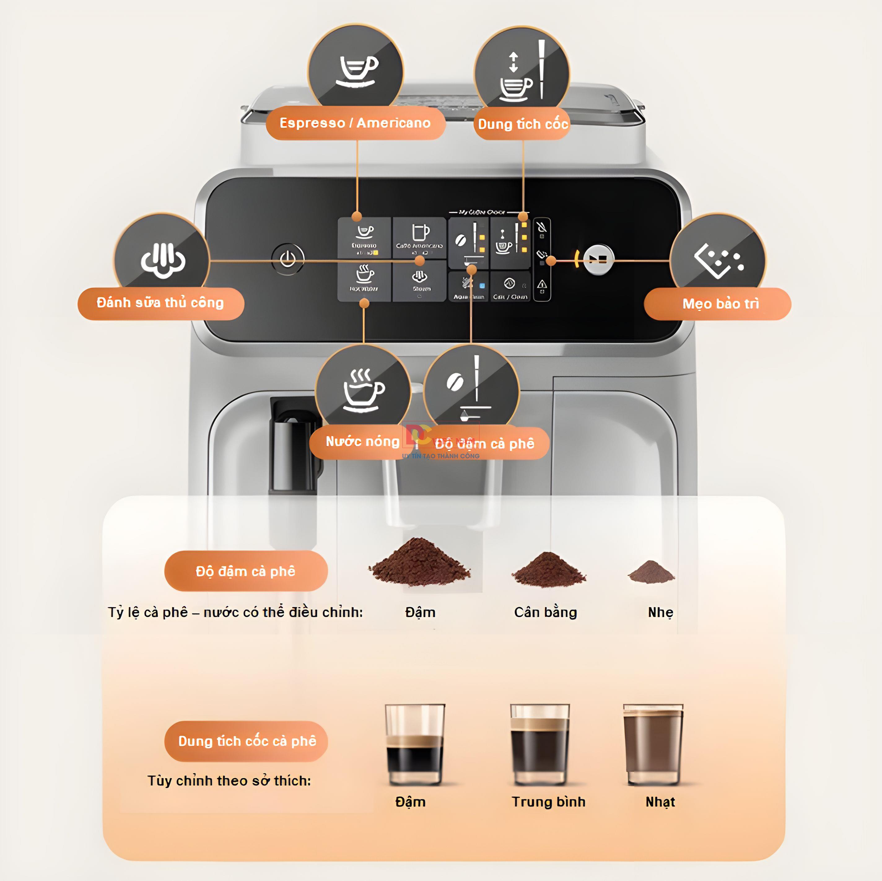 - Chế độ pha tự động: Espresso, Americano