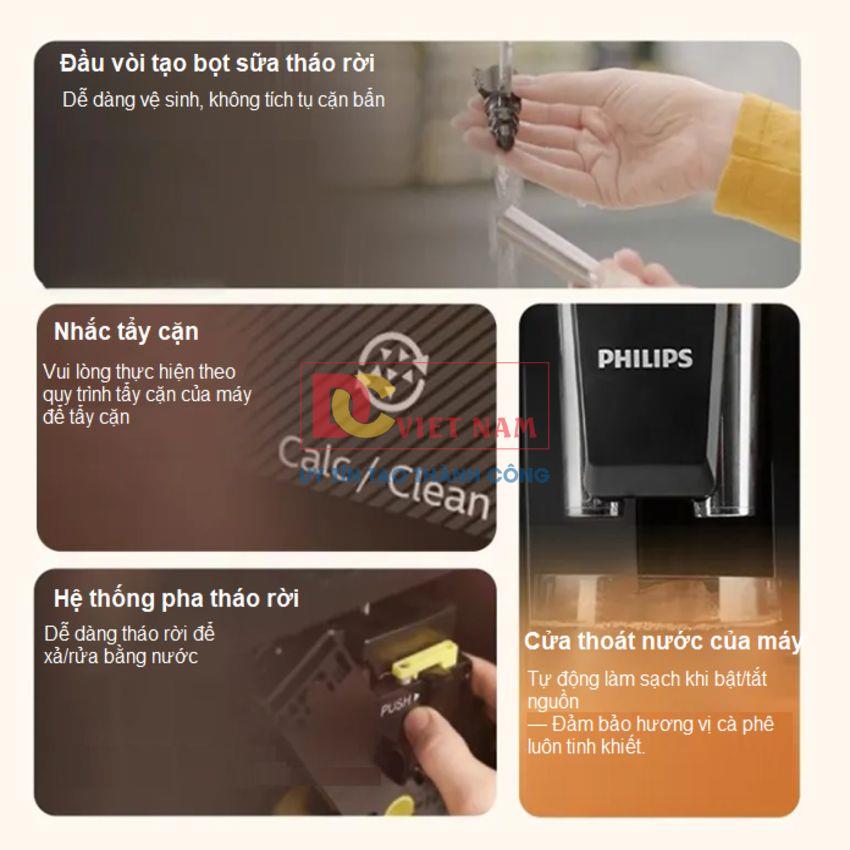 - Máy pha cafe Philips được tích hợp tính năng thông báo tẩy cặn tự động,giúp người dùng có thể yên tâm rằng máy luôn được bảo trì đúng cách mà không phải lo lắng về việc quên làm sạch.