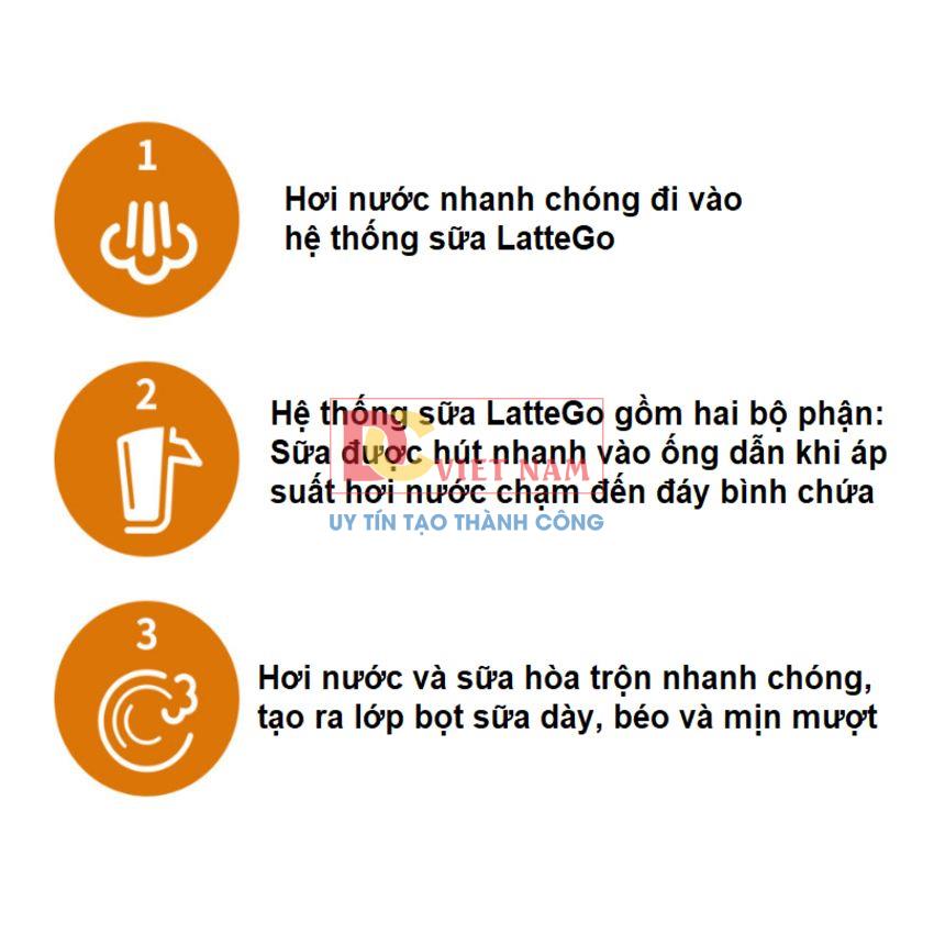 - Hệ thống sữa: LatteGo – Tạo bọt sữa tự động