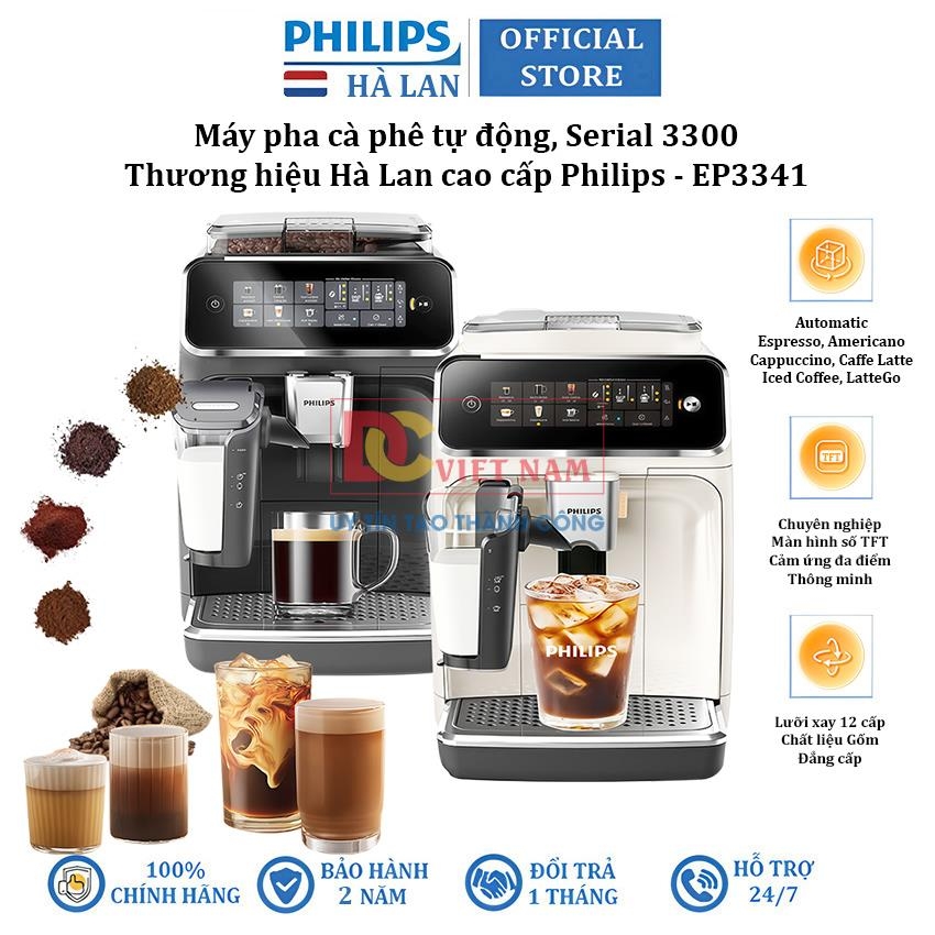 Trải nghiệm cà phê hoàn hảo ngay tại nhà với máy pha cà phê EP3341 Series 3300. Máy pha này mang đến sự kết hợp hoàn hảo giữa công nghệ hiện đại và thiết kế tinh tế, giúp bạn dễ dàng tạo ra những tách cà phê chất lượng cao. Được thiết kế để đáp ứng nhu cầu cà phê đa dạng của bạn, Philips EP3341 không chỉ nâng cao trải nghiệm pha chế mà còn làm cho không gian bếp của bạn thêm phần sang trọng và tiện nghi