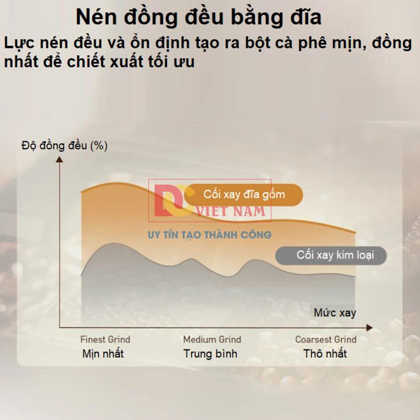- Cối xay có 12 mức điều chỉnh, cho phép bạn tinh chỉnh độ mịn của bột cà phê, từ đó cá nhân hóa hương vị theo sở thích riêng.