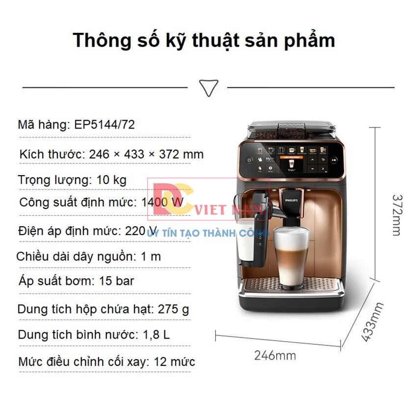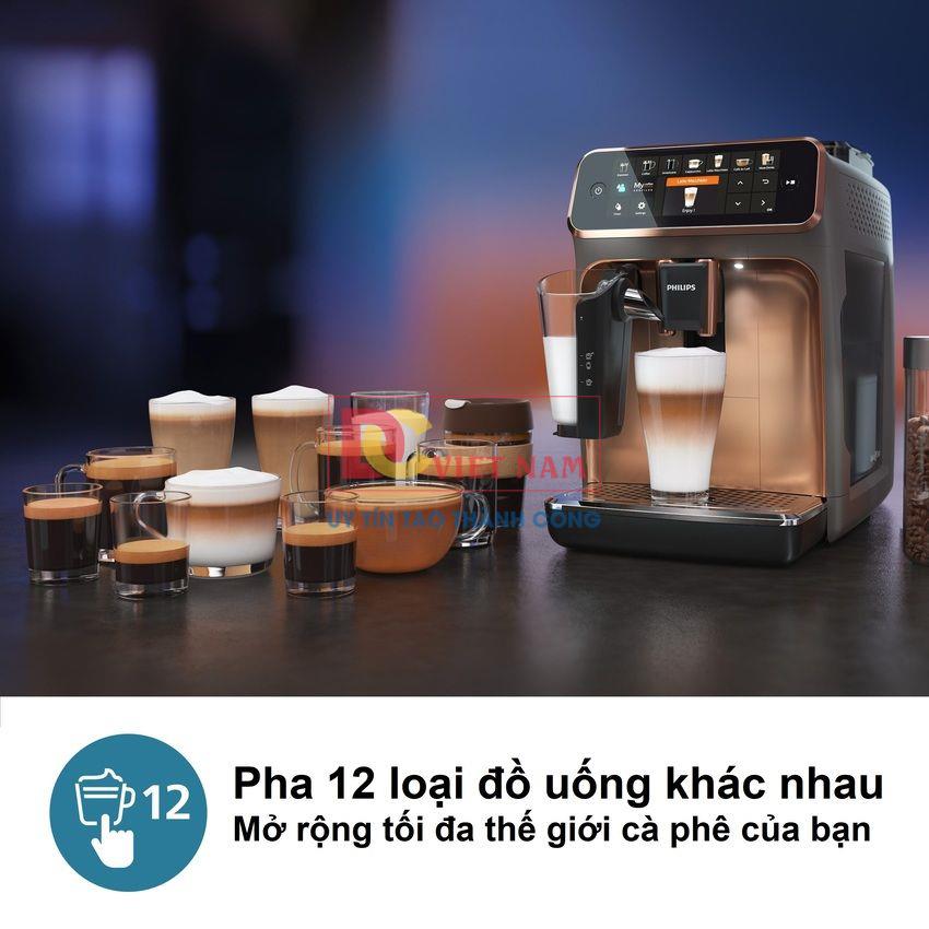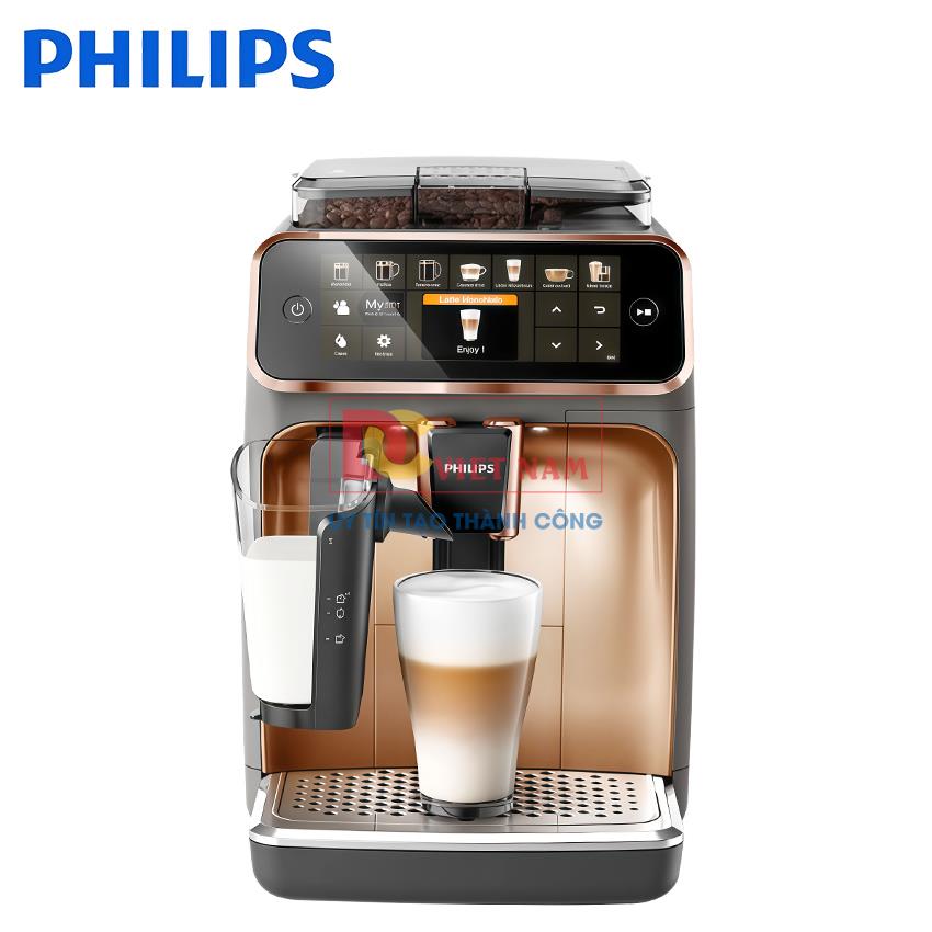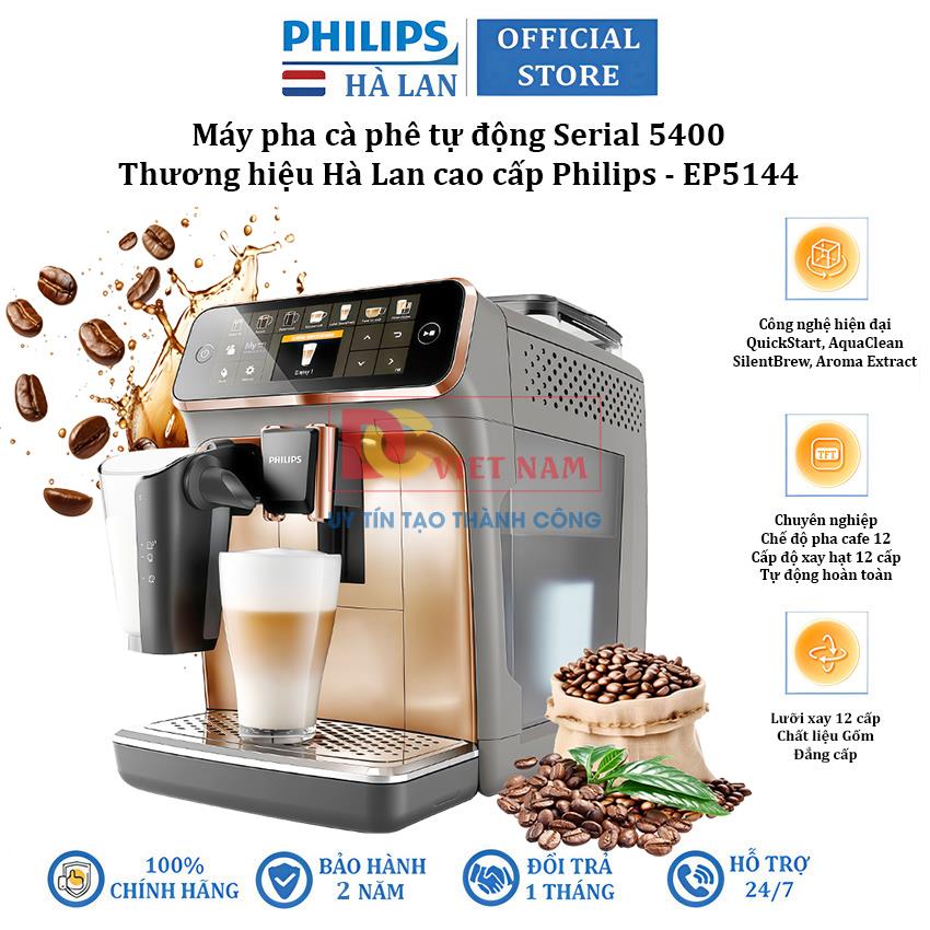 Máy pha cafe tự động Philips EP5144/72 Serie 5400 là lựa chọn lý tưởng dành cho những người mong muốn thưởng thức đa dạng cà phê một cách tiện lợi ngay tại nhà. Với 12 công thức đồ uống từ Espresso đến Latte macchiato, công nghệ Aroma Extract cân bằng tối ưu nhiệt độ pha và hương thơm được chiết xuất, hệ thống đánh sữa tự động LatteGo và nhiều tiện ích hiện đại khác,… thiết bị sẽ mang tới cho người dùng những tách cà phê đậm đà và chất lượng nhất