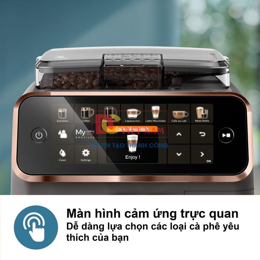 - Màn hình hiển thị rõ ràng giúp bạn chọn loại cà phê chỉ với vài thao tác chạm, nhanh chóng và tiện lợi.